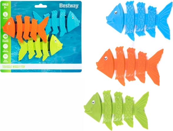 De set van leuke duikvisjes laat elk bad veranderen in een avontuur. Drie kleurrijke visjes (oranje, groen en blauw) zijn ontworpen om naar de bodem te zinken en kinderen aan te moedigen om te duiken. Spelen helpt hen om bewegingscoördinatie te ontwikkelen en zwemvaardigheden te verbeteren.
