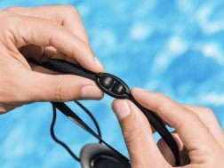 Zachte siliconen kussentjes sluiten veilig aan op het gezicht en voorkomen waterinfiltratie. De verstelbare siliconenband met snelle regulering en de comfortabele neusklem zorgen voor een precieze en stabiele pasvorm bij elke slag.