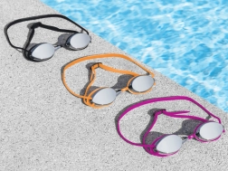 Stijlvolle Bestway Elite Blast Pro-zwembril voor leeftijd 14+ met gespiegelde polycarbonaatlenzen met UV-bescherming en antifog-coating, zachte siliconenafdichting tegen lekken en een snelverstelbare siliconenband voor perfect en comfortabel afstellen.
