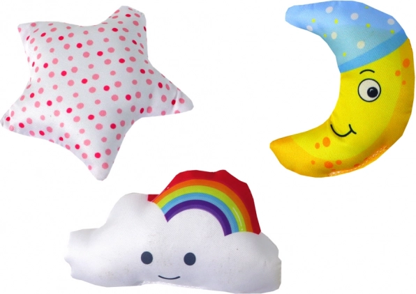 De hangende mobiel met clip is praktisch en gemakkelijk mee te nemen, waarmee u uw kind overal en altijd kunt vermaken en stimuleren. Dankzij de speciale clip kan deze eenvoudig en veilig worden bevestigd aan de rand van een kinderbedje, kinderwagen of draagdoek. De set bevat drie pluche gekleurde speeltjes - een maantje, wolkje en ster, die de aandacht van het kind trekken en hun sensorische ontwikkeling bevorderen.