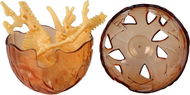 Dit transparante kunststof ei verbergt een verrassing in de vorm van een geel dinosaurus-skelet dat het kind zelf kan samenstellen. Het speelgoed stimuleert leren door te spelen, ontwikkelt geduld en logisch denken en prikkelt de fantasie bij het ontdekken van de oertijd.
