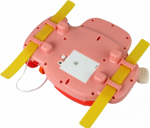 Het stuur is verbonden met een miniatuurwegpaneel met een afbeelding of tekening van een straat. Door het stuur te draaien kunnen kinderen hun "auto" over dit minipaneel "besturen", wat hun motorische coördinatie en verbeeldingskracht ontwikkelt.