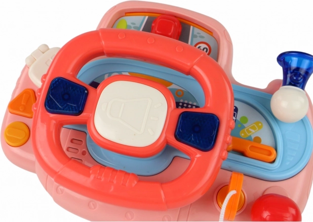Het interactieve roze stuur is een speelgoed dat kinderen niet alleen vermaakt, maar ook interactief leren en de ontwikkeling van motorische coördinatie en zintuiglijke vaardigheden bevordert.