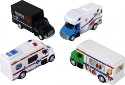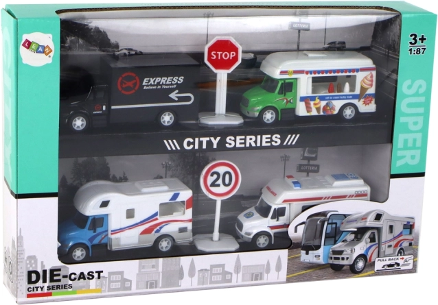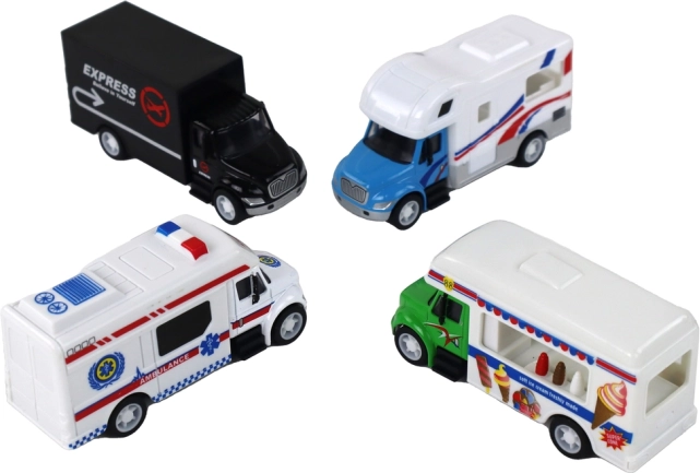 .Deze set bevat een zwarte truck, een ijswagen op wieltjes, een camper klaar voor avontuur en een ambulance om dramatische reddingsacties na te spelen. Elk voertuig is nauwkeurig gereproduceerd op schaal 1:87, wat zorgt voor een realistische uitstraling en een unieke charme.