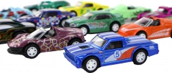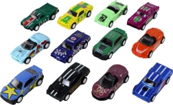 De set autootjes op schaal 1:64 maakt elk kind blij dat van racen en het verzamelen van modellen houdt. Elk autootje heeft een andere vorm en kleur (blauw, groen, oranje, roze) en is uitgerust met frictie-aandrijving – trek het autootje naar achteren en laat los, en het schiet vooruit.