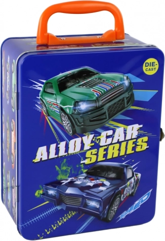 Inclusief een stijlvolle metalen koffer in donkerblauw met sportautomotieven, metalen sluiting en een inklapbaar handvat. Binnenin vind je 18 vakken voor overzichtelijke opslag van de modellen; in 6 daarvan kun je je favorieten plaatsen. Veilige opslag beschermt de autootjes tijdens vervoer en bij het opbergen.
