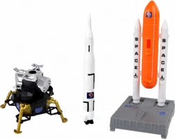 De complete set met astronaut, raketten, ruimteschip en lanceerplatform stelt kinderen in staat authentieke scenario’s van lanceringen en landingen te creëren.