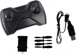De set bevat ook vier verwisselbare propellers en een kabel voor het opladen van de batterij.