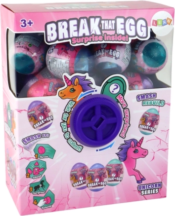 De set eieren met magische eenhoorns biedt interactieve en verrassende mogelijkheden voor kinderen die graag in de wereld van fantasie duiken. De eieren zijn geplaatst in een speciale doos met een trekkersmechanisme, dat bij draaien naar rechts een ei vrijgeeft, waardoor kinderen een moment van onverwachte verrassing ervaren.
