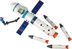 Deze gedetailleerde ruimteset geeft kinderen een authentieke beleving van een raketlancering. Blikvanger is de blauwe lanceertoren vanwaar de raket op missie vertrekt. Inclusief 2 astronautenfiguren die in de modules kunnen plaatsnemen om echte ruimteoperaties na te bootsen.
