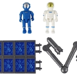 Twee astronautenfiguren, een mechanische arm en een zonnepaneel breiden speelscenario’s uit van lancering tot en met een missie in een baan om de aarde.