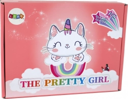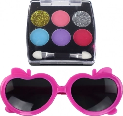 Een oogschaduwpalette in roze, paarse en blauwe tinten, aangevuld met gouden en zilveren glitters, maakt elke kleine styliste blij. Twee lipsticks en contourpaletten maken de speelse make-uplook compleet.
