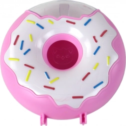 De stijlvolle kunststof case in donutvorm biedt ruimte aan alle favoriete beautyspulletjes en is dankzij de ketting comfortabel te dragen op reis of naar de speeltuin.