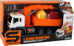 Vuilniswagen met kraan wrijvingsaandrijving oranje 1:16