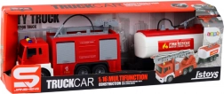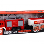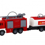 Set met een brandweerauto en aanhanger, ontworpen op schaal 1:16, die indruk maakt met realistische details en functies. Deze speelgoedset biedt kinderen niet alleen eindeloos speelplezier, maar leert hen ook over het werk van brandweerlieden en hun voertuigen.