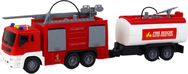 Brandweerkorps met aanhanger brandweerwagen 1:16 Licht en geluid
