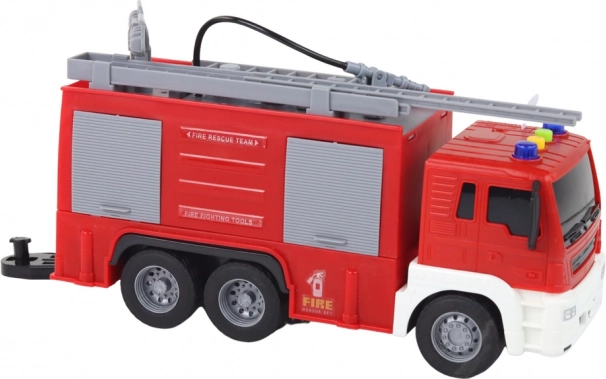 Een van de interessantste functies is de mogelijkheid om water te sproeien, waarmee echte inzet van een brandweerwagen wordt nagebootst. Vul eenvoudig het waterreservoir en besproei vervolgens de omgeving via het bijbehorende mechanisme, alsof een echte brandweerman in actie is.