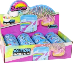 Dit speeltje is een ideaal cadeau, niet alleen voor kinderen die van kleuren en sprookjesachtige accenten houden, maar ook voor volwassenen. Het hanteren van de veer, het bekijken van de regenboogkleuren en het eenhoornmotief en het karakteristieke geluid bij elke uitrekking of draai helpen stress en spanning te verminderen.