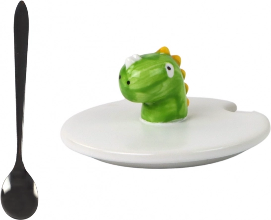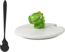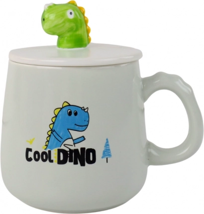 De mok wordt geleverd met een slim ontworpen deksel met een handgreep in de vorm van een groene dinosaurus, wat extra humor toevoegt. Zo kun je je drankje zorgeloos meenemen zonder te morsen.