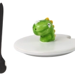 Een slim deksel dat je drankje warm houdt en tegelijk beschermt tegen morsen. De handgreep heeft de vorm van een groene dinosaurus.
