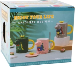 Schattige mok met een inhoud van 400 ml van hoogwaardige keramiek met een 3D dinosaurusmotief, een praktisch deksel in de vorm van een kroon en een metalen lepeltje. Een geweldig cadeau voor kinderen én volwassenen en ideaal voor thee, koffie en cacao.