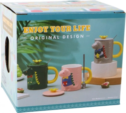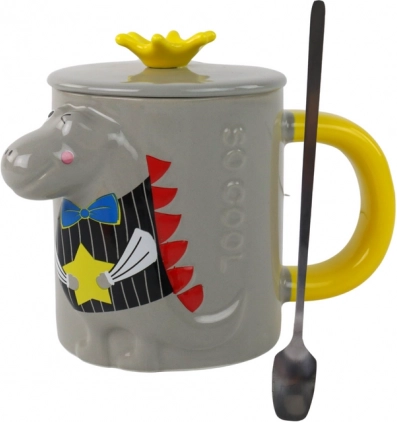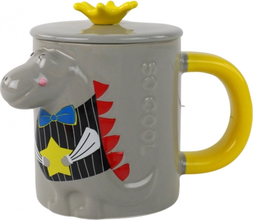 Deze design keramische mok in grijs valt op door het opvallende 3D reliëf van een dinosaurus in levendige kleuren. Het comfortabele gele oor en de gladde glazuur zorgen voor prettig dagelijks gebruik, thuis, op kantoor of op school.