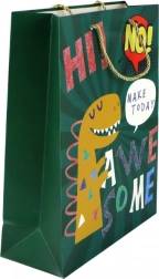 Deze kwalitatieve papieren tas met een dinosaurusmotief en subtiele glitter verandert elke cadeaumoment in een klein feestje. De stevige constructie en duurzame gedraaide koordhandvatten in een elegante gouden tint zorgen voor draagcomfort en een aantrekkelijke look.