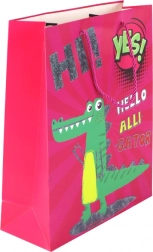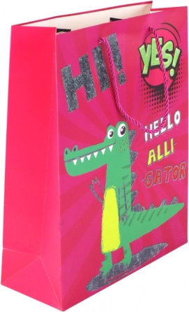 Elegante roze papieren cadeauzak met een schattig krokodillenmotief en subtiele glitters voor een stijlvolle presentatie van je cadeau. Stevige gevlochten roze koordhandvatten zorgen voor comfortabel dragen en veilige inhoud. Ideaal voor verjaardagen, feestdagen en kinderfeestjes.