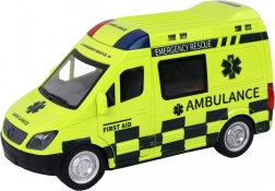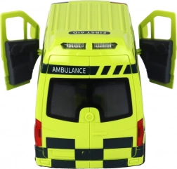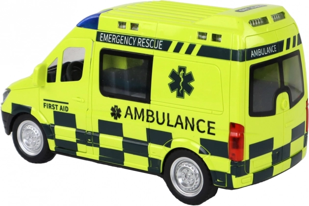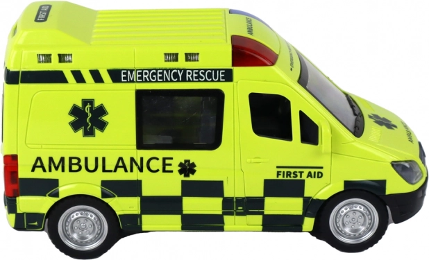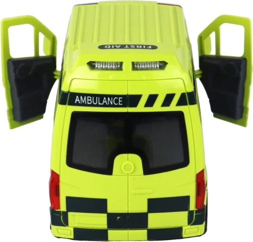 De ambulance is ontworpen om echte reddingsvoertuigen natuurgetrouw na te bootsen, inclusief gedetailleerde wielen, ramen en opschriften.