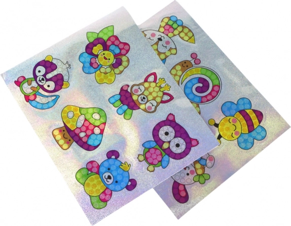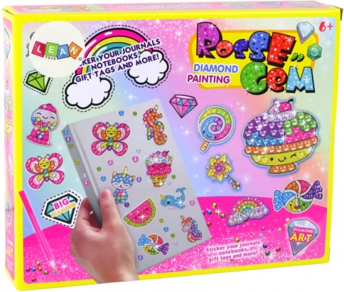 Ontdek het plezier van knutselen met de kinder-set voor diamantschilderen van stickers. Door kleine glinsterende steentjes op voorgedrukte sjablonen te plakken ontstaan originele en duurzame dierenstickers waarmee je schriften, rugzakken en etuis versiert. De activiteit is eenvoudig en leuk en stimuleert fijne motoriek, geduld en oog-handcoördinatie.
