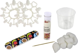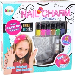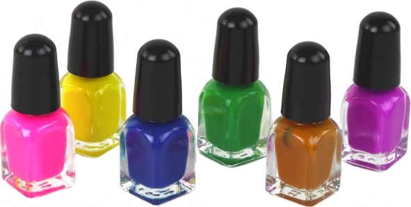 Er zijn decoratieve bolletjes inbegrepen voor speelse 3D-effecten – strooi ze eenvoudig op de natte lak. Kinderen kunnen ook kunstnagels versieren en experimenteren met vormen en lengtes. Een speciale beker is bedoeld om eigen kleuren te mengen, dus de fantasie kent geen grenzen.