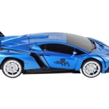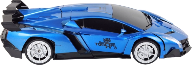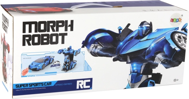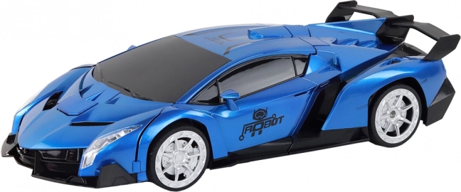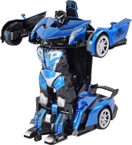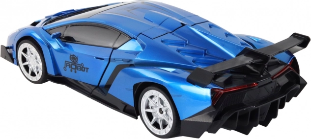 Maak kennis met de revolutionaire op afstand bestuurbare robotauto op schaal 1:10 in een elegante blauwe kleur – een perfecte combinatie van een sportwagen en een fascinerende transformatie naar een robot. Het design met oog voor detail weerspiegelt het realistische karakter van een echte sportauto.