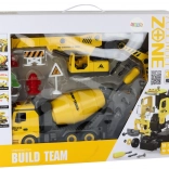 Verbouw de basis eenvoudig tot een betonmixer, graafmachine of kraan met werkende haak. Eén set, eindeloze speelmogelijkheden.