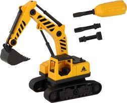 Takelwagen (geel), rupsgraafmachine, schroevendraaier, batterijen 3× AG13, handleiding