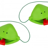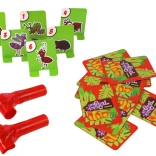 Voor de voorbereiding van het spel moeten de maskers worden samengesteld (voor het lachende kameleongezicht plaatsen we de elastieken en de uitrolbare toeters). We vouwen ook de groene (aan de andere kant rode) kaarten zodat ze rechtop kunnen staan.
