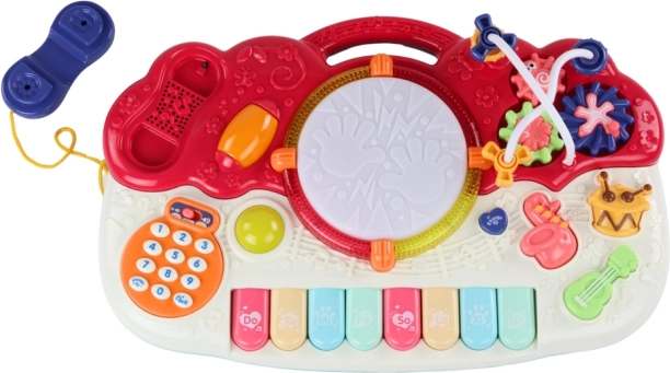 Bevat een toetsenbord, een trommel, een ingebouwde telefoon en diverse geluids- en lichteffecten om de muzikale bewustwording van kinderen te stimuleren.