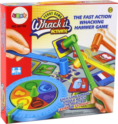 Draai aan de spinner, let op de letter of categorie en bemachtig als eerste met je hamertje de bijpassende kaart! Dit dynamische spel traint snelle reacties, concentratie en gezonde competitiedrang. Dankzij de heldere kleuren en overzichtelijke afbeeldingen is het geschikt voor kinderen en volwassenen en werkt het perfect als snel partyspel.