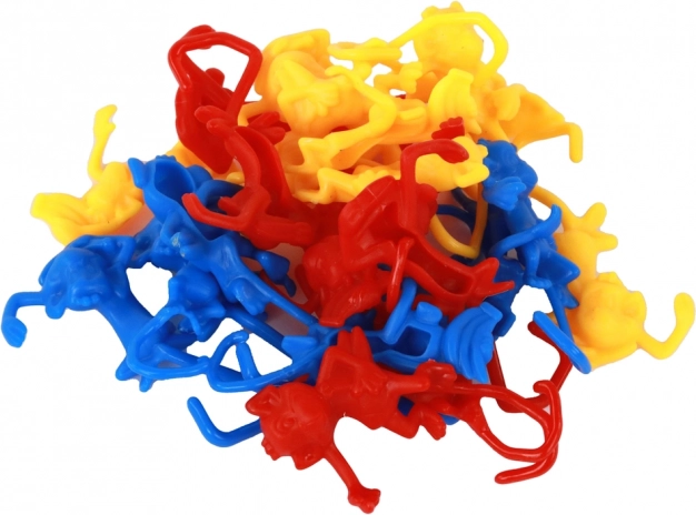 Lichte plastic aapjes met haakjes maken het mogelijk om snel lange kettingen te maken zonder andere figuurtjes aan te raken – ideaal om vaardigheid te trainen en om te strijden.