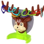 Het familiespel ringen gooien op het hert biedt eenvoudige regels maar groot plezier. Zet het hert in elkaar, deel de ringen uit en richt op het gewei – wie de meeste ringen plaatst, wint! Dankzij de meegeleverde zandloper stel je gemakkelijk tijdsrondes in en wordt het spel een vlotte competitie.