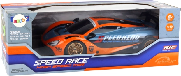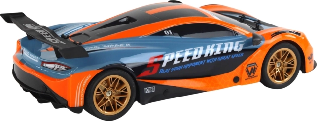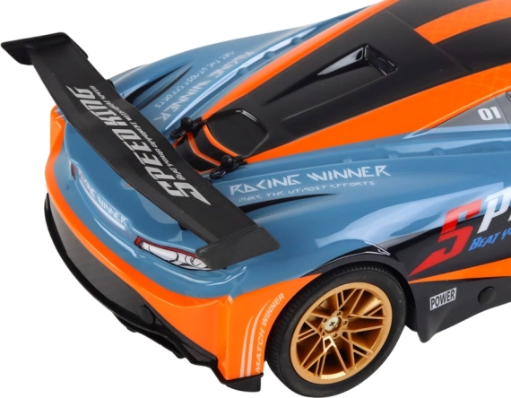 Ontdek plezier op volle snelheid met deze nauwkeurig afgewerkte RC-auto op schaal 1:10. De oranje-blauwe sportieve uitvoering met gouden velgen en achterspoiler biedt zowel een geweldige look als prestaties. Dankzij de 2.4G-frequentie heb je stabiel bereik en nul storing, zodat je met meerdere auto’s tegelijk kunt rijden.