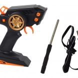 De moderne zender op 2.4G-frequentie zorgt voor een stabiele verbinding zonder storingen en maakt gelijktijdig rijden met meerdere modellen mogelijk. De ergonomische trekkerzender ligt zeker in de hand.