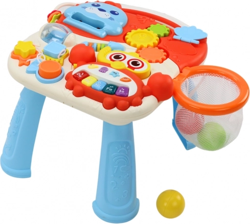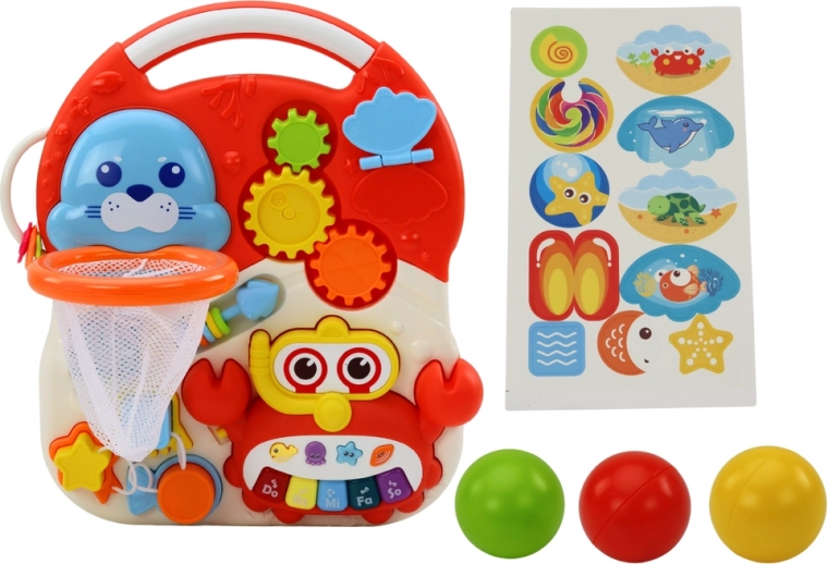 Er is ook een extra attractie – een mandje waarin kleurrijke rammelballetjes kunnen worden gegooid, wat de fijne motoriek en coördinatie van je kind verder ontwikkelt.