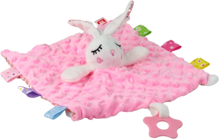 Tot de praktische functies behoort ook een lusje op het hoofd van het konijntje, waarmee je het eenvoudig kunt bevestigen aan een ledikant, kinderwagen of autostoeltje, zodat het speeltje altijd binnen handbereik is.