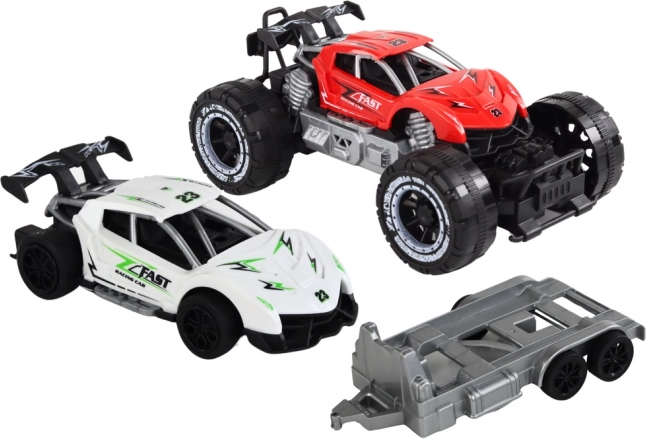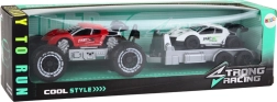 Bovendien kan het witte autootje naar wens van de aanhanger worden losgemaakt, waardoor er ruimte ontstaat voor verschillende interacties en experimenten met diverse scènes en situaties. Je kind kan de rol aannemen van een terreinbestuurder die andere voertuigen op de aanhanger vervoert, races organiseert, vastgelopen voertuigen redt of gewoon door de wildernis reist.