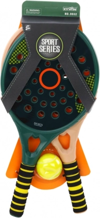 De set bevat ook een gele, zachte bal van PU-schuim met een diameter van circa 5,5 cm. Dankzij deze veilige en lichte bal is het spel leuk en veilig, vooral voor jongere spelers.