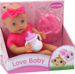 Deze babypop in een roze outfit is ideaal voor de eerste rollenspellen. Dankzij de meegeleverde accessoires – een kom met lepel en vork en een flesje – kunnen kinderen het voeden en de dagelijkse verzorging nadoen. Een uitstekende keuze voor de ontwikkeling van fijne motoriek en sociale vaardigheden.