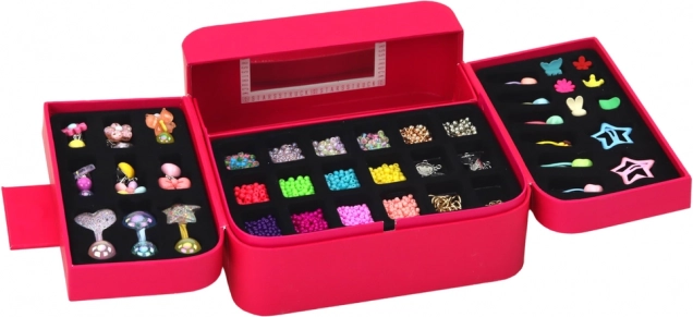 Meerdere vakjes voor het gemakkelijk sorteren van kralen, oorbellen en accessoires. Het spiegeltje maakt het passen van de creaties eenvoudig en houdt alles op zijn plek.