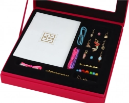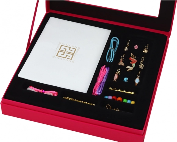 Bevat koordjes, visdraad en een ketting die ook als dubbele armband kan worden gebruikt – de mogelijkheden zijn echt talrijk. Alles is opgeborgen in een elegante doos, zodat kinderen de set gemakkelijk overal mee naartoe kunnen nemen en alle onderdelen netjes kunnen bewaren.