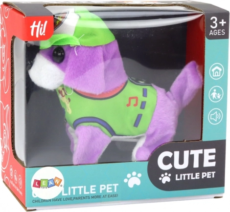 Maak kennis met dit schattige interactieve pluchen hondje, dat de favoriete metgezel van je kind zal worden! Dit lieve hondje is paars en draagt een groen mutsje en kleding. Dankzij zijn compacte afmetingen is het makkelijk overal mee naartoe te nemen. Na inschakelen komt het tot leven met vrolijk geblaf en beweging, wat meteen de aandacht van de kleintjes trekt. Het interactieve gedrag stimuleert kinderen om te spelen en te lachen om zijn grappige bewegingen.