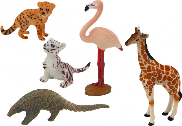 Onze set dierenfiguren laat kinderen de wereld van de natuur en het avontuur verkennen. De set bevat zes schattige figuren: een giraf, een flamingo, twee tijgerwelpjes, een olifant en een gordeldier, allemaal met veel detail afgewerkt.